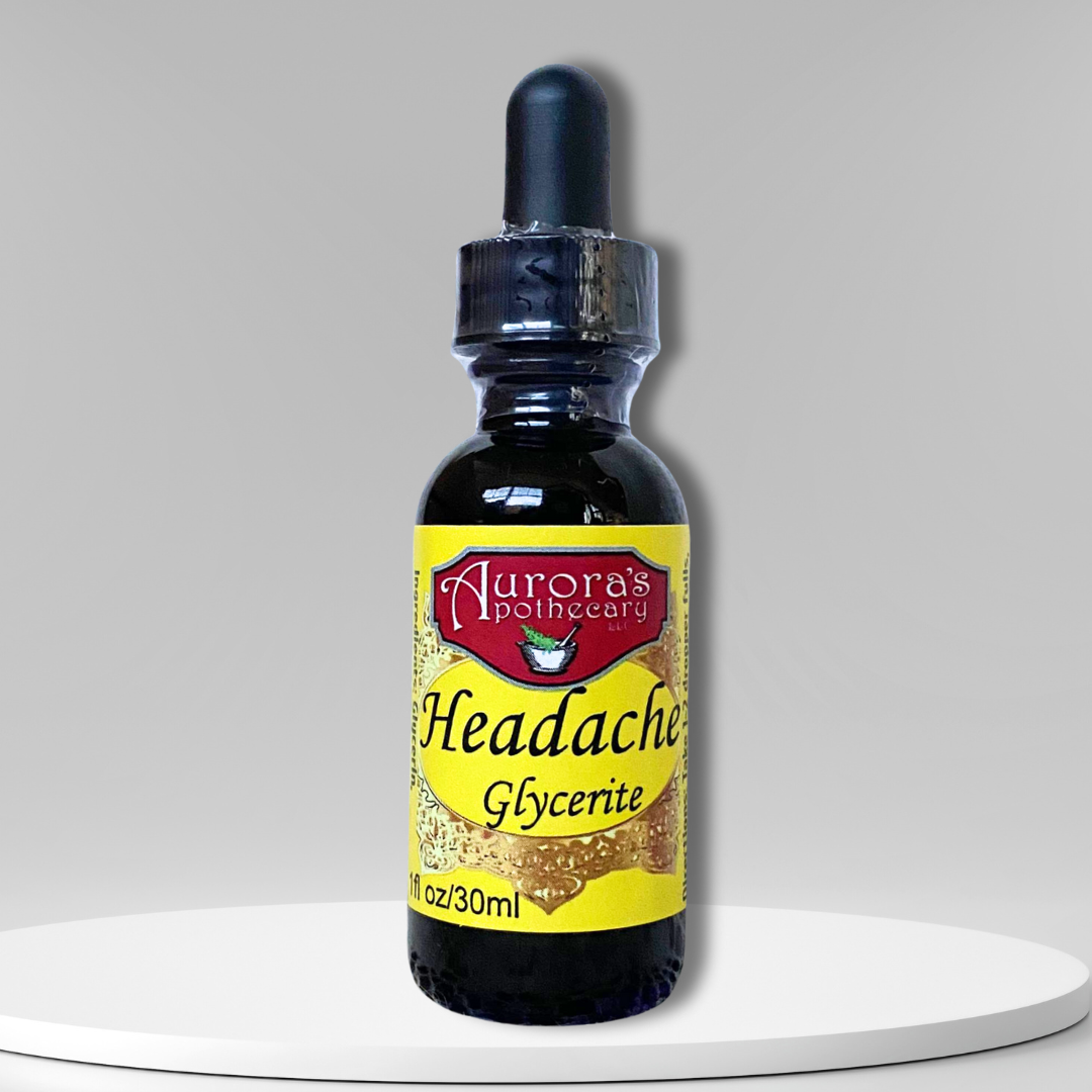 Melt Away Tension Headaches with Aurora's Apothecary Headache Glycerite! Feeling the pressure build? Don't let tension headaches steal your day. Aurora's Apothecary Headache Glycerite is your natural path to relief. This soothing blend of botanical powerhouses like Feverfew, Meadowsweet, and Wild Lettuce works gently to ease discomfort and melt away tension. Calm the Storm: Our unique formula targets the root of your headache, calming nerves and promoting relaxation.