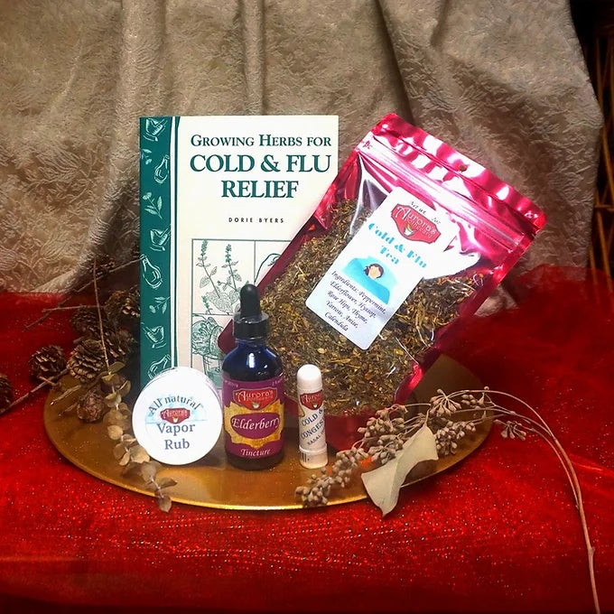 Everything you need to get you through not feeling your best. Our Cold and Flu tea to ease symptoms, Elderberry Tincture to bring your resistance back online, Cold and Congestion Inhalent to help you breathe again, Vapor Rub to help with sleeping, and a book of even more remedies you can do yourself.